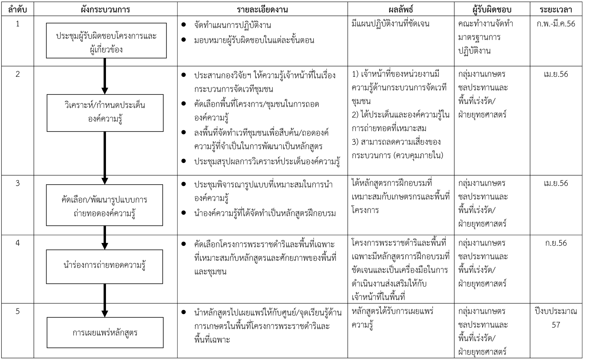 กระบวนการพัฒนาการถ่ายทอดความรู้ด้านการเกษตรในพื้นที่โครงการ